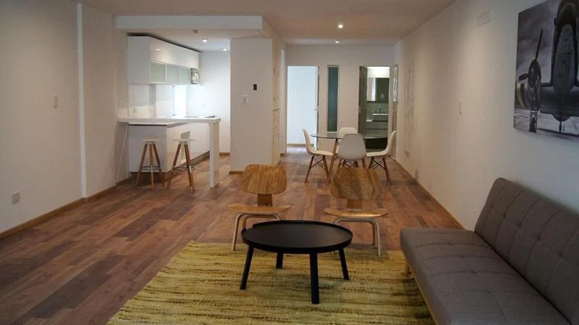Muros terminados con enlucido de yeso reforzado con guardacantos metálicos en las aristas expuestas. | Cielorrasos de yeso con buñas perimetrales. | Pintura primera marca. | Pisos ingenieriles / flotantes y zócalos de madera. | Aberturas exteriores principales de aluminio con doble vidriado hermético de primera calidad. | Puertas placa en interiores. | Herrajes de primera categorÃa. | Barandas de balcones de aluminio.