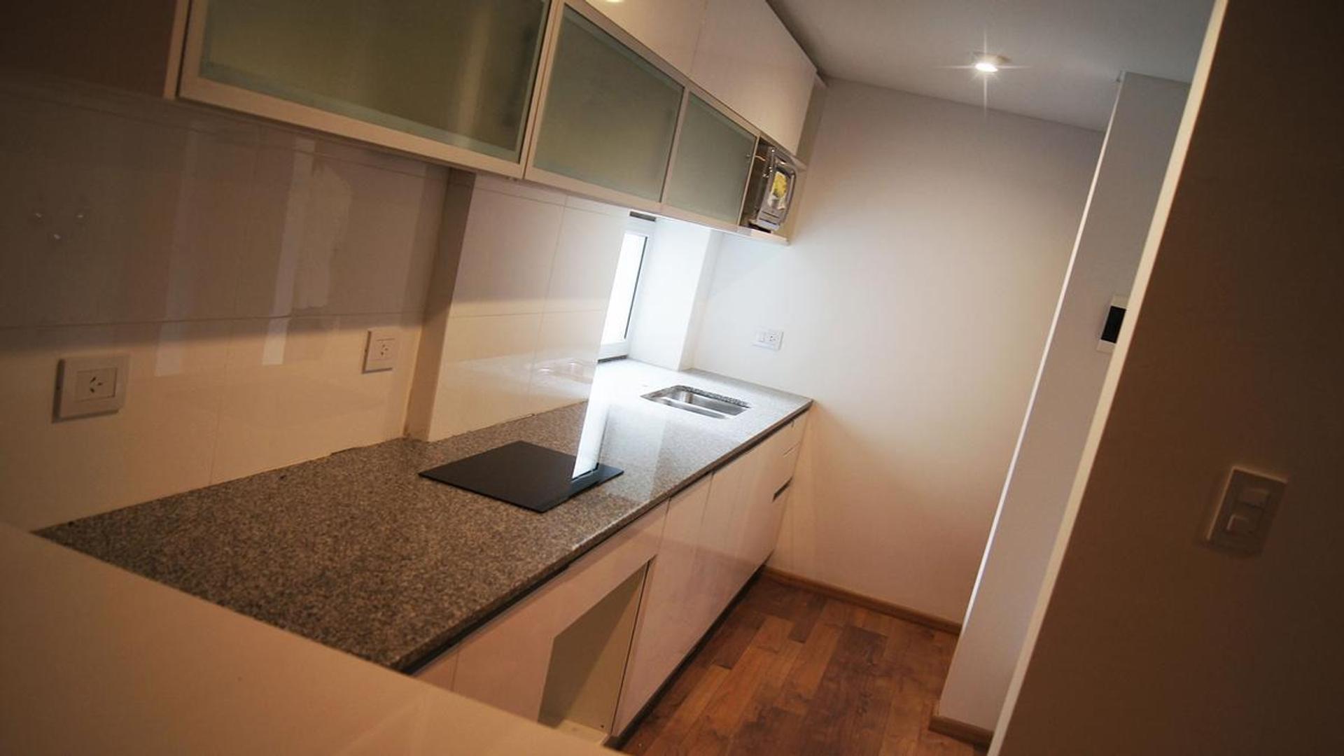 Cocina equipada con muebles bajo-mesada y alacenas de primera calidad. | Mesada de granito. | Pileta de acero inoxidable Johnson Acero o similar. | GriferÃa cromada, de alta tecnologÃa y diseño. | Anafe eléctrico de primera marca. | Pisos y revestimientos de porcelanato / cerámica rectificada.